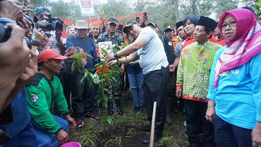 FOKUS JATENG-BOYOLALI-Wakil Gubernur Jawa Tengah H. Taj Yasin Maimoen atau Gus Yasin menanam 6500 bibit tanaman di Taman Nasional Gunung Merbabu, Bukit Kinasih Dukuh Pasha Desa Senden, Kecamatan Selo, Kabupaten Boyolali, Senin (02/03/2020).