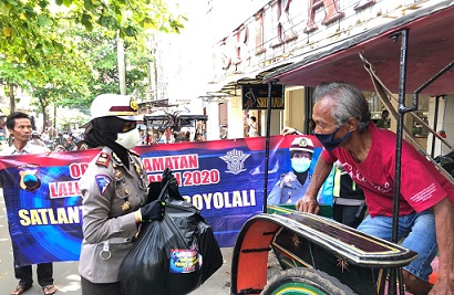 Kasat Lantas mengatakan sasaran dalam pembagian masker dan sembako yakni pekerja harian yang terdampak seperti kusir dokar dan tukang becak. Para Kusir dan tukang becak ini mengalami penurunan pemasukan sejak adanya social distancing dan physical distancing gegara Corona.