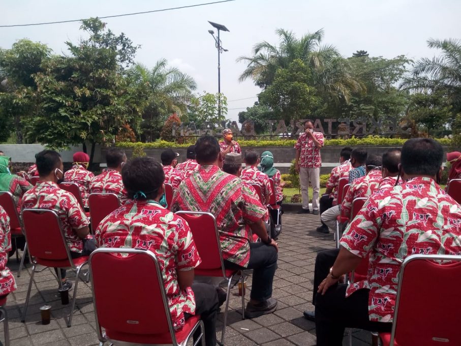 FOKUSJATENG – BOYOLALI – Tidak seperti biasanya. Begitulah yang dilakukan Sekda Boyolali, Masruri yang juga Ketua Gugus Penanganan Pencegahan Covid-19 Boyolali ini. Lha bagaimana tidak, ia menggelar rapat terbuka di bawah terik matahari Kamis (16/4/2020).