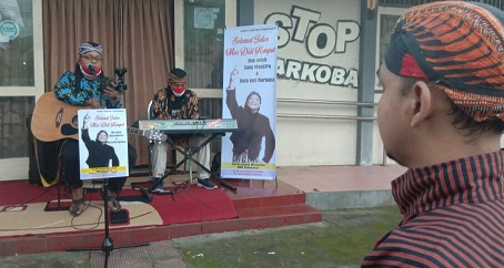 FOKUS JATENG-SUKOHARJO-Aktifis pencegahan narkoba Sukoharjo gelar konser mengenang Didi kempot. Sejumlah lagu campursari ciptaan Didi Kempot dimainkan dalam event tersebut secara live streaming menjelang buka puasa di halaman sekretariat P4GN (Pencegahan Pemberantasan Penyalahgunaan Peredaran Gelap Narkoba) Sukoharjo.