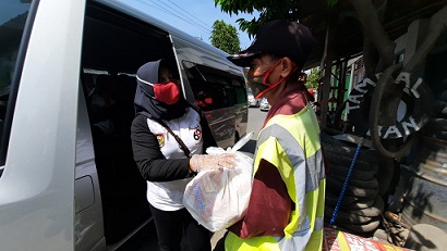 FOKUS JATENG-BOYOLALI-Aksi sosial Jumat Berkah ala persatuan istri anggota dewan ( PIADE) DPRD Boyolali dilakukan di beberapa pasar di kecamatan Banyudono, Jumat ( 15/5/2020) pagi. Pasar pengging menjadi yang pertama untuk pembagian paket sembako, para istri anggota dewan ini membagikan sembako kepada tukang parkir dan buruh gendong.