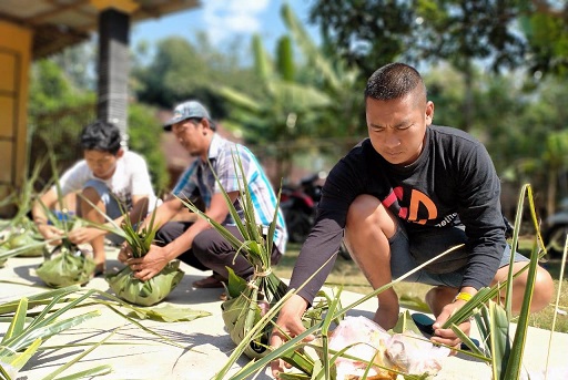 “Setelah semua lengkap, kemudian ditutup dengan daun jati. Kemudian kedua ujung kroso itu diikat, dengan demikian semua masakanan sama, baik macamnya maupun ukurannya,” ujarnya.