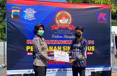 Menurut Kasat Lantas, AKP Dwi Panji Lestari mewakili Kapolres Boyolali, AKBP Rachmad Nur Hidayat, kendati diselenggarakan secara sederhana, sejumlah kegiatan digelar Polres Boyolali untuk memperingati HUT Bhayangkara ke-74. Salah satunya penerbitan SIM khusus bagi pemohon yang lahir pada tanggal 1 Juli.