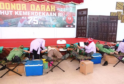 Sejumlah prajurit TNI angkatan darat dari Kodim 0724/ Boyolali melakukan aksi donor darah dalam rangka dalam rangka HUT Kemerdekaan Indonesia Ke 75. Kegiatan donor darah ini merupakan Kerjasama Korem 074/Warastratama dengan PMI (Palang Merah Indonesia) Surakarta yang dibantu oleh Rumah Sakit TK II Slamet Riyadi Surakarta, yang ikuti oleh Prajurit jajaran Korem 074/Warastratama dan Persit KCK Koorcab Rem 074/Surakarta.