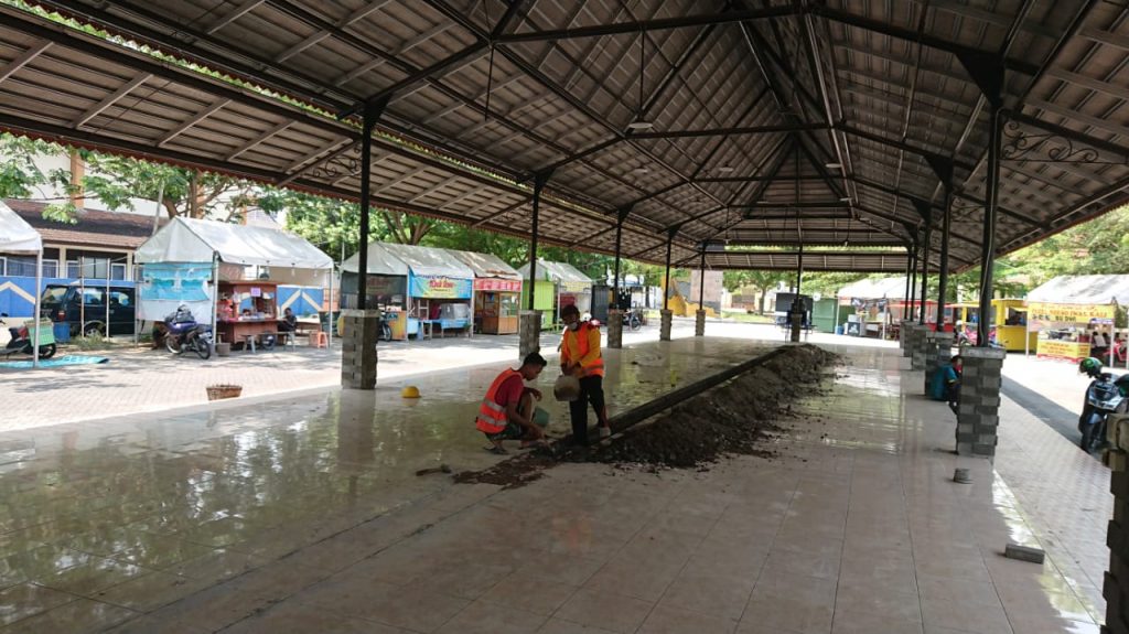 FOKUSJATENG – KARANGANYAR – Proyek rehabilitasi kawasan pusat jajanan serba ada (Pujasera) ditengarai dikerjakan pemborong alias rekanan bodong, Kamis (17/9). Itu karena dalam perbaikan fasilitas di komplek jajanan kuliner yang telah berjalan dua hari tersebut tidak disertai papan