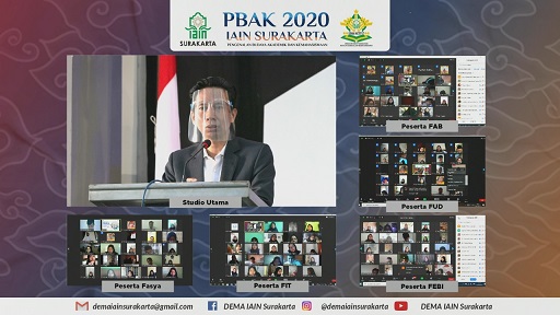 FOKUS JATENG-SURAKARTA-Di tengah masa pendemi Covid 19, Ribuan mahasiswa baru 2020 IAIN Surakarta, Rabu (23/09/2020) mengikuti Pengenalan Budaya Akademik dan Kemahasiswaan (PBAK 2020) IAIN Surakarta secara daring.