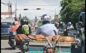 Dalam video yang direkam oleh seorang penumpang mobil yang ada di belakangnya. Nampak, seorang pengendara mengenakan helm membawa beronjong warna hijau. Sedangkan di atasnya membawa sesuatu yang di bungkus kain jarit. Agar tidak jatuh, bungkusan memanjang ini tali bekas ban. Dalam video terdengar percakapan seorang perempuan yang diduga sebagai perekam video yang menanyakan terkait apa yang dibawa pengendara itu. “kuwi nggowo opo coba? Kok medeni banget lho (ini bawa apa coba? Kok menakutkan sekali) ,” ucapnya.