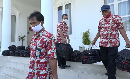 Menggunakan anggaran Rp 163 juta, paket bantuan tersebut berisi tas ransel, alat tulis, buku tulis, kain seragam pramuka. Hal ini dilakukan Pemkab untuk menyediakan sarana dan prasarana belajar.