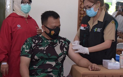 Dandim Boyolali Letkol (Inf) Aris Prasetyo menjadi yang pertama menerima suntikan itu, hal itu dimaksudkan untuk menjadi contoh kepada masyarakat bahwa vaksin tersebut aman. “Ini adalah salah satu upaya yang nyata dari pemerintah agar masyarakat aman dari Covid 19,” kata Dandim usai pencanangan vaksinasi Covid-19.