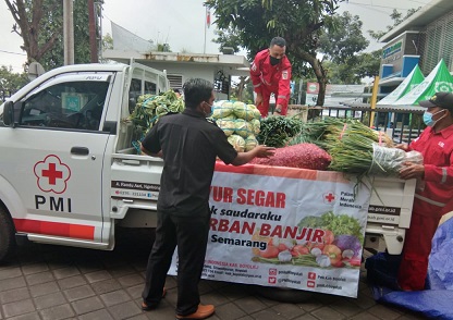 FOKUS JATENG-BOYOLALI-Palang Merah Indonesia (PMI) kabupaten Boyolali mendistribusikan bantuan bencana banjir ke PMI kota Semarang dan PMI Kab Kendal. Bantuan berupa sayur mayur segar tersebut nerupakan hasil penggalangan anggota SIBAT PMI kawasan lereng Merapi.