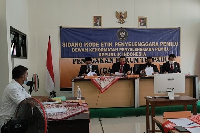 FOKUS JATENG-BOYOLALI-Dewan Kehormatan Penyelenggara Pemilu (DKPP) menggelar sidang pemeriksaan dugaan pelanggaran kode etik penyelenggara pemilu (KEPP). Tiga penyelenggara pemilu disidang DKPP di Kantor Badan Pengawas Pemilu (Bawaslu) Boyolali. Senin (22/2/2021).