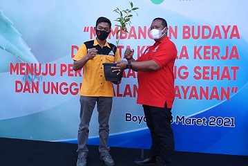 Dengan menerapkan protokol kesehatan secara ketat, pasangan Said Iwan juga melibatkan diri dalam acara penanaman 1000 pohon dalam rangkaian peringatan hari jadi Perumda Tirta Ampera Boyolali yang ke 43. Rabu (3/3/2021).