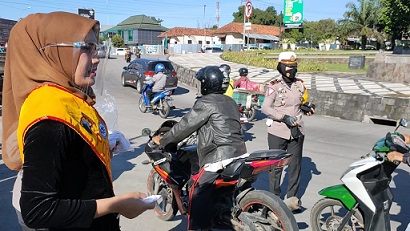 “Kami menyebarkan pamflet tentang keselamatan lalu lintas kepada para pengguna jalan,” katanya di sela kegiatan.