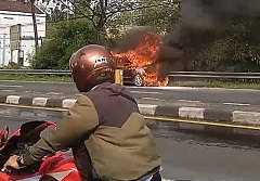 “Kami saat itu sedang patroli dan mengetahui ada mobil yang terbakar. Tak ada korban jiwa maupun luka dalam kejadian itu. Kebakaran diduga disebabkan karena korsleting arus listrik,” kata Kapolsek Mojosongo AKP Joko Winarno.