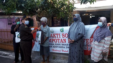 Sebanyak 150 paket sembako yang dibagikan kepada warga tidak mampu, utamanya di sekitar Kantor Kejari setempat. Pembagian sembako bertujuan untuk meringankan beban masyarakat tidak mampu akibat dampak pemberlakuan PPKM Darurat.