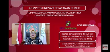FOKUS JATENG-JAKARTA-BPJS Kesehatan berhasil menyabet penghargaan Top Inovasi Pelayanan Publik Terpuji Klaster Lembaga Pemerintahan dalam Kompetisi Inovasi Pelayanan Publik (KIPP) Tahun 2021 yang diselenggarakan oleh Kementerian Pendayagunaan Aparatur Negara dan Reformasi Birokrasi (PAN RB), Kamis (29/07). Penghargaan tersebut diberikan pada inovasi Kapitasi Berbasis Kinerja (KBK) yang dikembangkan untuk mendorong Fasilitas Kesehatan Tingkat Pertama (FKTP) yang bekerja sama dengan BPJS Kesehatan agar mengoptimalkan mutu layanannya kepada peserta JKN-KIS.