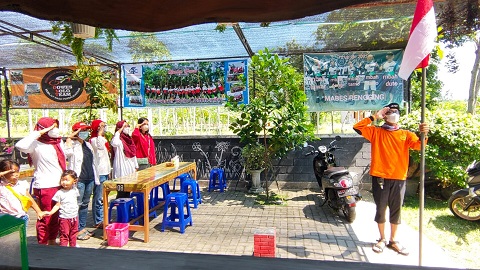FOKUS JATENG-BOYOLALI-Puluhan pengunjung warung makan Bumbon Pawon di Desa Salakan Kecamatan Teras dibuat gugup bersamaan saat detik-detik proklamasi,mendadak ada teriakan penghormatan bendera ditengah aktivitas makan mereka. Kegiatan ini di gagas Totok salah satu pengunjung warung makan tersebut.