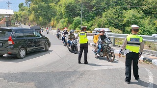 Kegiatan penyekatan di tikungan Jurang Grawah, petugas memeriksa kendaraan sepeda motor maupun mobil pribadi yang melintas di jalan Boyolali – Magelang tersebut.