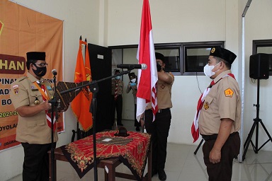 FOKUS JATENG-BOYOLALI-Pamong Satuan Karya Pramuka Adhyasta Pemilu Kwartir Cabang Boyolali, kini dilibatkan dalam pengawasan pelaksanaan Pemilu, hal itu terungkap saat Bawaslu Boyolali menggelar Pengukuhan Majelis Pembimbing, Pimpinan dan Pamong Satuan Karya Pramuka Adhyasta Pemilu Kwartir Cabang Boyolali, Senin (20/9/2021) di Kantor Bawaslu setempat.