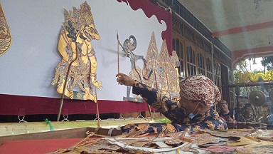 Dalam aksi pentas wayang kulit ini, , ki Dalang Joko Sunarno asal Kecamatan Karanggede, Boyolali. Menggelar wayang climen berdurasi satu jam di teras rumah itu dengan mengambil lakon Wahyu Makutharama.
