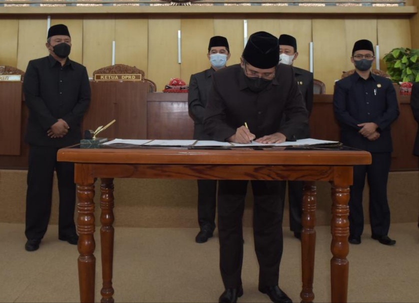 FOKUS JATENG-BOYOLALI –Persetujuan bersama antara Bupati Boyolali dengan DPRD mengenai enam Rancangan Peraturan Daerah (Ranperda) akhirnya tercapai dalam sidang paripurna, ditandai dengan Penandatanganan Berita Acara Persetujuan Bersama oleh Ketua dan Wakil Ketua DPRD Kabupaten Boyolali beserta Bupati Boyolali, pada (15/12/2021) di Ruang Rapat Paripurna S. Paryanto, SH, MH.
