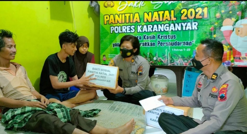 FOKUSJATENG.COM, Karanganyar – Jajaran Polres Karanganyar memberikan tali asih kepedulian sosial kepada warga dalam rangka menyambut peringatan Hari Raya Natal 2021 dan Tahun Baru 2022 (Nataru).