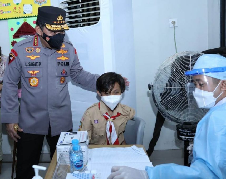 Kapolri Jenderal Listyo Sigit Prabowo menghadiri launching vaksinasi merdeka anak di SDN 01 Mangga Dua Selatan, Sawah Besar, Jakarta Pusat (/Fokusjateng.com)