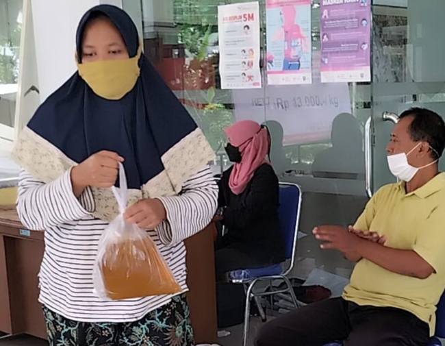 Karena masih dalam masa pandemi COVID-19, maka distribusi minyak goreng curah ini diatur per kelurahan atau desa.