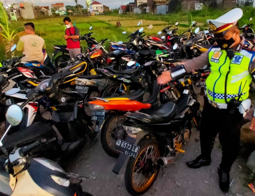 Ratusan Sepeda motor diperiksa di Polisi karena akan melakukan aksi balapan liar di jalan Sawahan-Pandeyan, Kecamatan Ngemplak, Boyolali, Minggu (6/3/2022) (yulianto/Fokusjateng.com)
