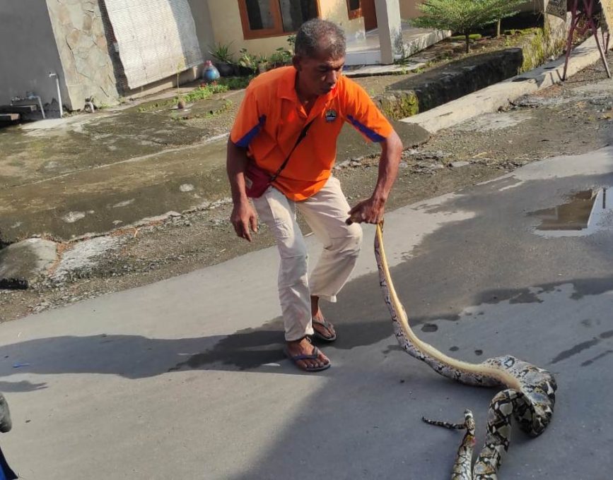 Dono menduga, ular jenis sanca kembang tersebut merupakan ular liar karena kawasan pemukiman itu berdekatan dengan sungai. “Sepertinya sudah kenyang karena perutnya melar dan saat ditangkap tidak agresif,” kata Dono.