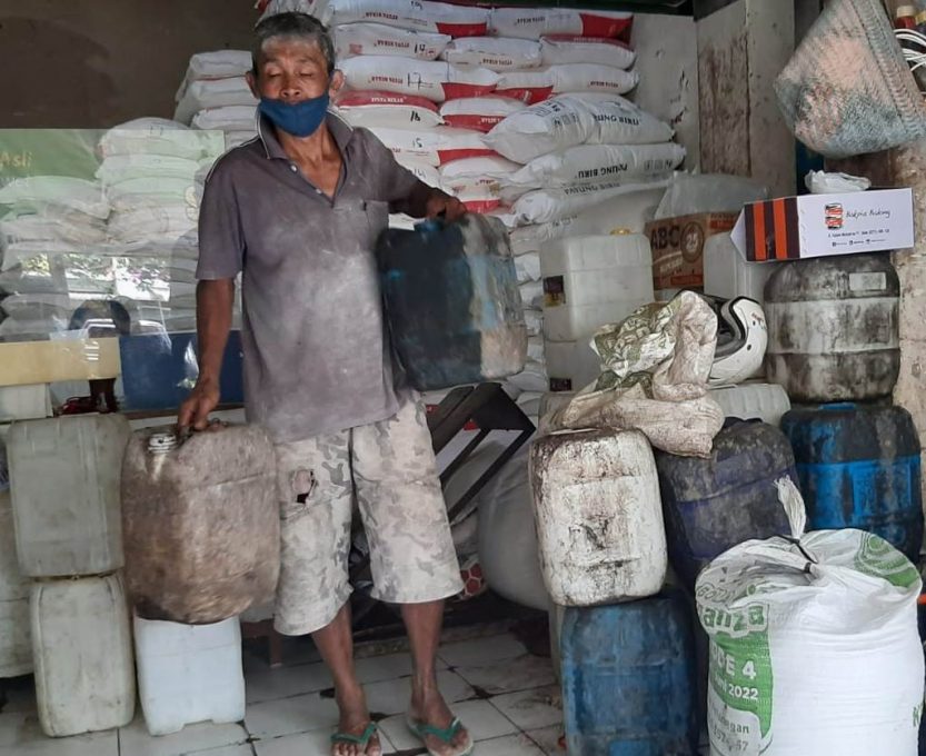 “Langganannya banyak dari UKM. Kalau normal seminggu dapat setoran dua tangki minyak curah yang masing-masing isinya 7.000 kilogram. Jadi 14 ton minyak goreng curah. Tapi kapasitas tangki penyimpanan 10 ton. Sampai sekarang belum ada informasi kapan turunnya minyak goreng curah. Kalau barang ada baru bisa nentukan harga jualnya. Kalau pas harga naik kita bilang dulu,” ujar Onang.
