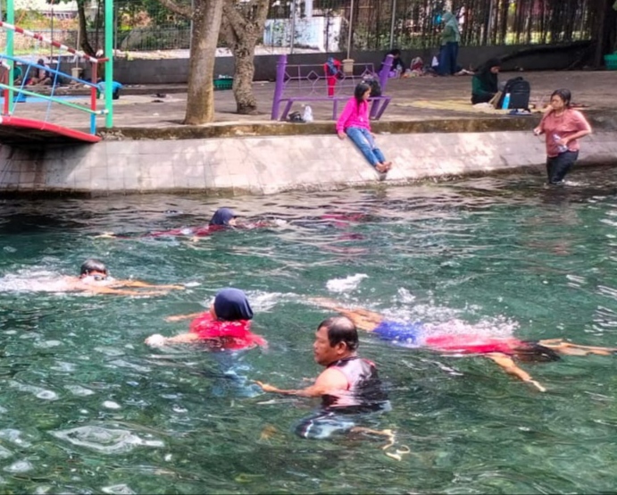 Sementara pantauan di Umbul Sungsang, Pengging. Banyudono, dipadati ratusan pengunjung yang menyemut. Masyarakat tampak berenang dan bersantai di sekitar lokasi.