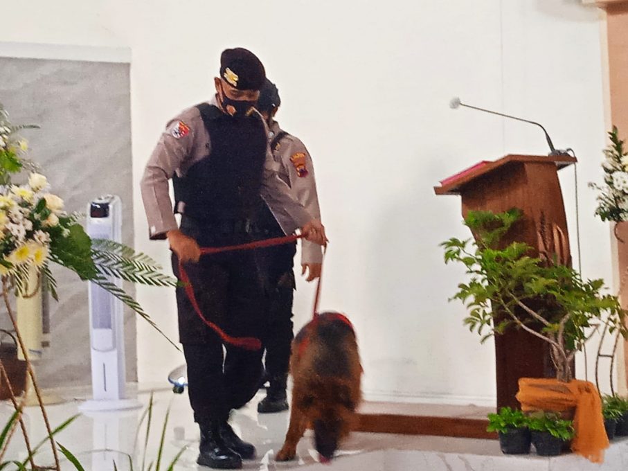 Perayaan Paskah : Polisi juga menerjunkan anjing K-9 dan metal detector untuk memastikan tidak ada benda berbahaya. (yulianto/Fokusjateng.com)