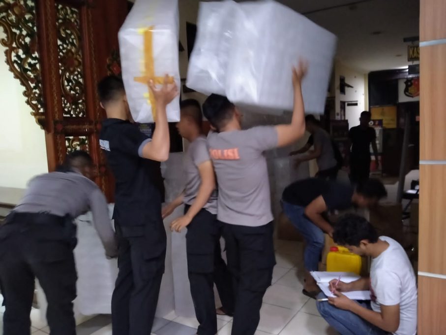 Polisi menemukan tumpukan kardus yang diduga berisi minyak goreng curah yang sudah dikemas dalam botol, serta sejumlah barang bukti lain di kediaman pelaku (poto istw) (yulianto/Fokusjateng.com)