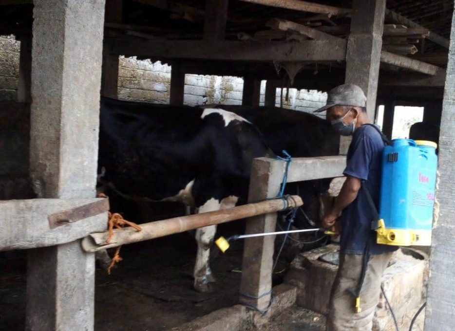 Pemilik sapi juga diminta rutin menyemprot kandang dengan disinfektan. (yulianto/Fokusjateng.com)