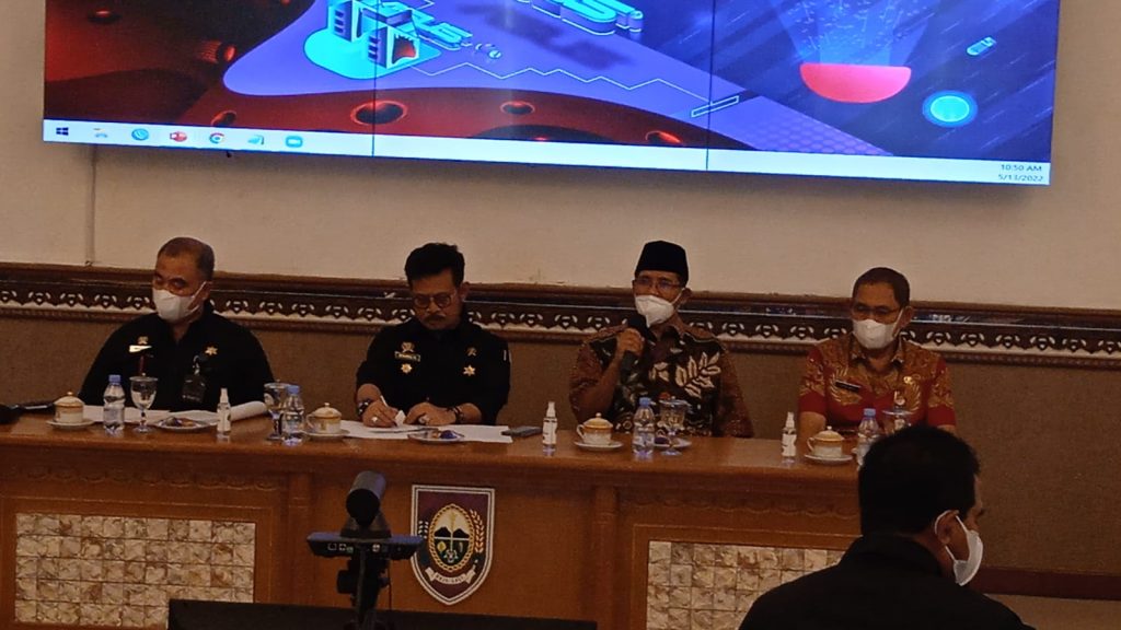 FOKUS JATENG-BOYOLALI-Hasil riset dan pengembangan yang dilakukan oleh Pemerintah Pusat dan Kementrian Pertanian mengenai kasus virus Penyakit Mulut dan Kuku yang menyerang hewan ternak ditegaskan oleh Menteri Pertanian Syahrul Yasin Limpo bawah virus tersebut tidak menular kepada manusia. “Penyakit Mulut dan Kuku (PMK) ada tapi banyak yang sembuh. Kita sudah melangkah dan hasilnya ada trend penyembuhan yang positif,” ujar Syahrul saat memberikan keterangan di ruang Merbabu Kantor Bupati Boyolali pada Jumat 13 Mei 2022.