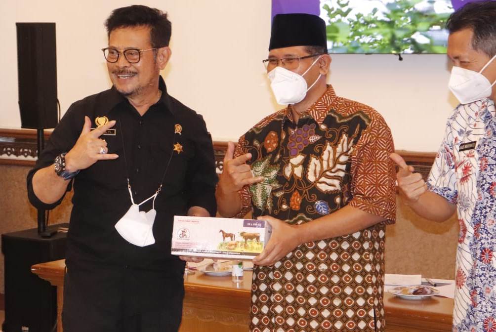Salam Metal : Menteri Pertanian Syahrul Yasin Limpo menyerahkan bantuan obat dan vitamin hewan ternak yang diteima Bupati Boyolali M Said Hidayat (yulianto/Fokusjateng.com)