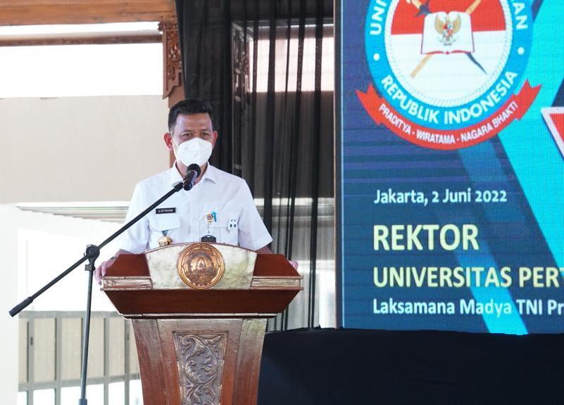 FOKUS JATENG-SOLO – Rektor Universitas Pertahanan (Unhan), Laksamana Madya TNI Prof. Dr. Ir. Amarulla Octavian, M.Sc., DESD., ASEAN Eng. memberikan orasi ilmiah dalam rangka peringatan Hari Lahirnya Pancasila di Universitas Sebelas Maret (UNS) Surakarta. Orasi tersebut disampaikan dalam acara Orasi Kebangsaan dan Soft Launching Gedung Javanologi UNS, Kamis 2 Juni 2022 di Pendapa R. Ng. Yasadipura Pusat Unggulan Iptek (PUI) Javanologi UNS. Turut hadir Rektor UNS, Prof. Dr. Jamal Wiwoho, S.H.,M.Hum.