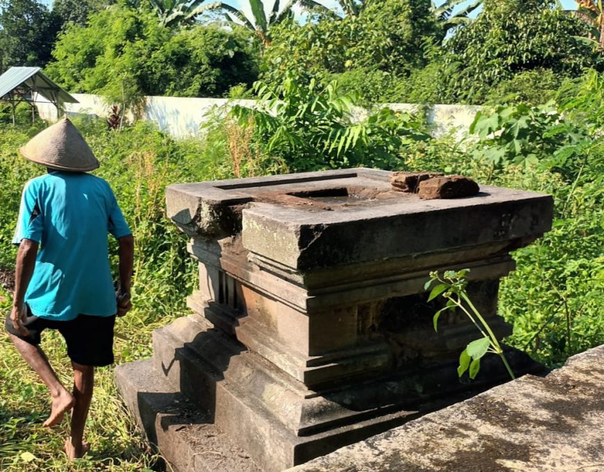 Semi (72) warga lainnya menambahkan, di pekarangan dekat makam tersebut dulu juga terlihat bata berukuran besar berserakan. Akan tetapi, warga tidak tahu kalau bata tersebut merupakan bagian dari bangunan candi.