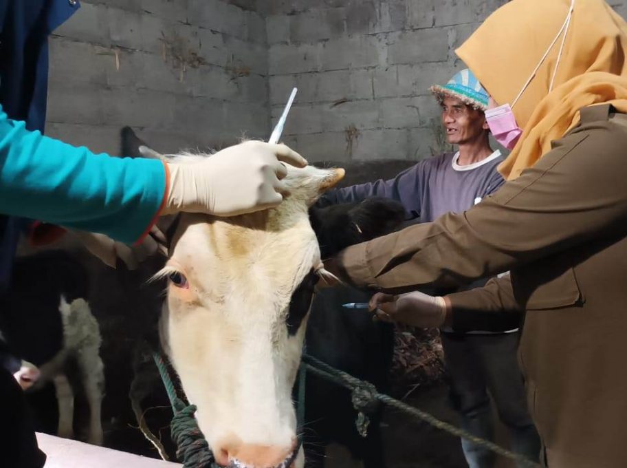 Petugas mendatangi satu persatu kandang warga. Sapi perah dari usia anakan, hingga sapi bunting menerima vaksin. (yull/Fokusjateng.com)