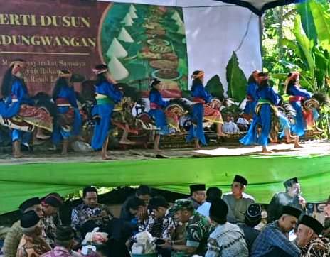 Terlihat, ratusan orang berkumpul di Balai Desa setempat baik dari warga desa setempat mau pun desa lain, pada Rabu 29 Juni 2022. Jalan menuju ke balai desa juga dihias dengan berbagai umbul-umbul. Hari itu digelar sebuah tradisi tahunan yang sudah turun-temurun dengan kenduri cinta Merti Dusun Kedungwangan.