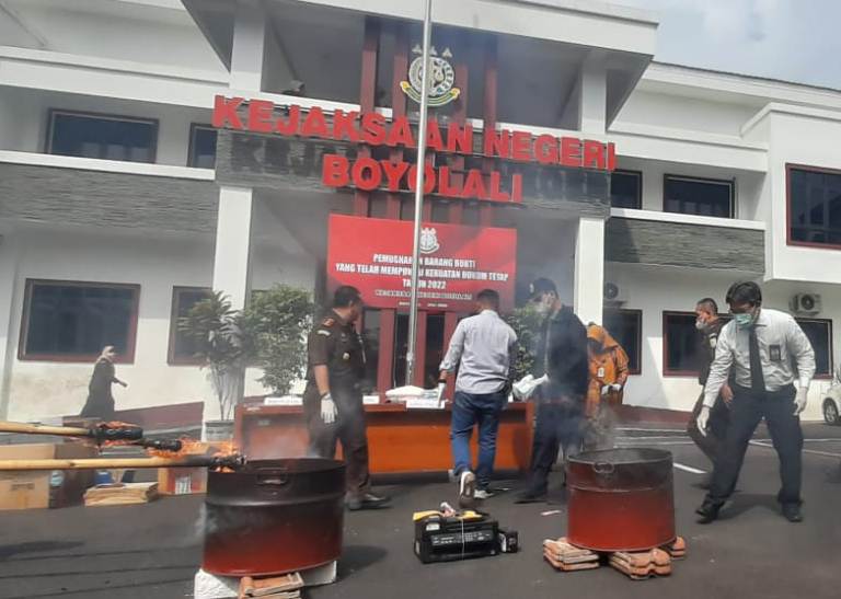 Kajari Boyolali, Mohammad Anshar Wahyuddin mengatakan pemusnahan ribuan bb dari 32 perkara pidum. Antara lain 14 perkara narkotika, 11 perkara keamanan negara dan ketertiban umum (Kemenegtibum) dan tindak Pidana Umum lain (TPUL). Serta tujuh perkara orang dan benda.