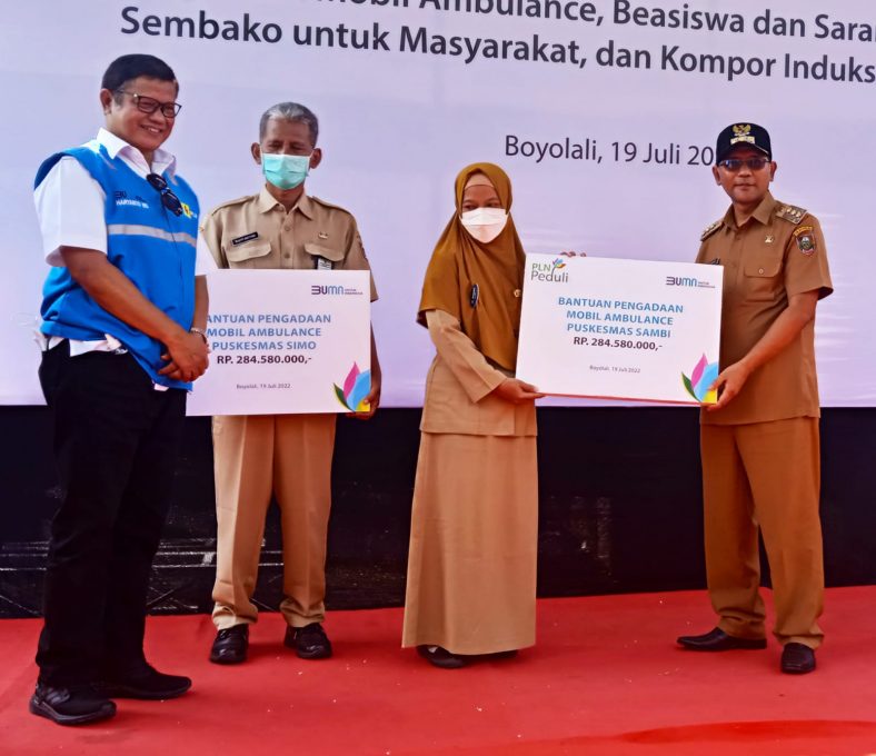 “Kita kerjasama dengan kementan untuk penggunaan listrik di pertanian yang akan meningkatkan produktivitas petani. Kami memberikan bantuan pelistrikan sumur dalam sawah di empat titik. Selain itu, hari ini (Selasa) juga diserahkan dua ambulans. Satu untuk Puskesmas Sambi dan satu untuk puskesmas Simo,” kata Direktur Bisnis Regional Jawa Madura dan Bali, PT PLN Persero, Haryanto WS disela acara penyerahan bantuan.