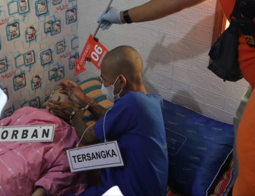 Dalam reka ulang tersebut, pelaku IS (32) memperagakan sejumlah adegan. Berlokasi di rumah Kost Jl. Soekarno Hatta Kec. Bergas.