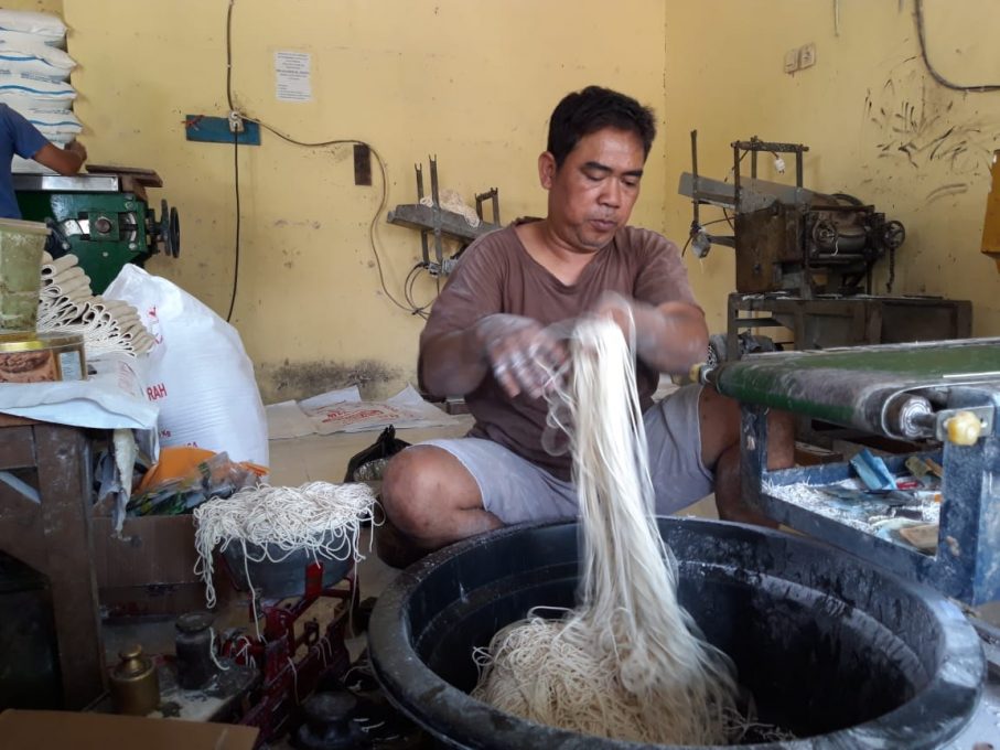 Kirdi salah satu Produsen Mie Rasa Baru, Kampung Koplak, Siswodipuran, Boyolali Kota mengaku harus menyesuaikan harga. Karena tepung terigu merupakan bahan baku utama mie buatannya.(doc) (yull/Fokusjateng.com)