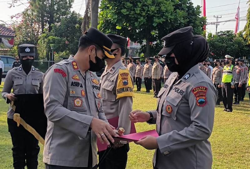 Dua anggota Polres Boyolali memperoleh penghargaan. Penghargaan diserahkan langsung oleh Kapolres Boyolali, AKBP Asep Mauludin dalam apel, Senin 22 Agustus 2022. (yull/Fokusjateng.com)
