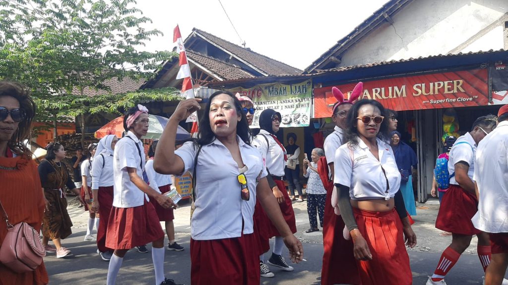 Ada yang menampilkan membawa ratusan bendera merah putih, drumband, kesenian rodat, topeng ireng, orang dewasa yang mengenakan seragam SD, teaterikan masa penjajahan dan ada juga yang mengenakan pakaian adat nusantara.