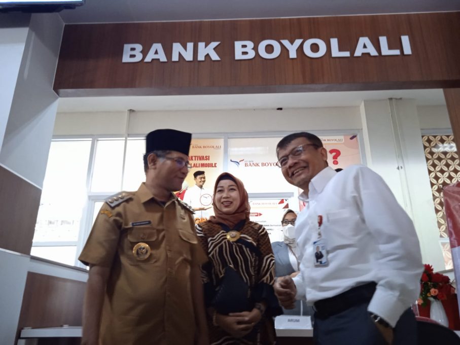 Bupati Boyolali M Said Hidayat didampingi istri bersama Dono Sri Hananto Dirut Bank Boyolali disela kunjungan ke Mall Layanan Publik Boyolali (yull/Fokusjateng.com)