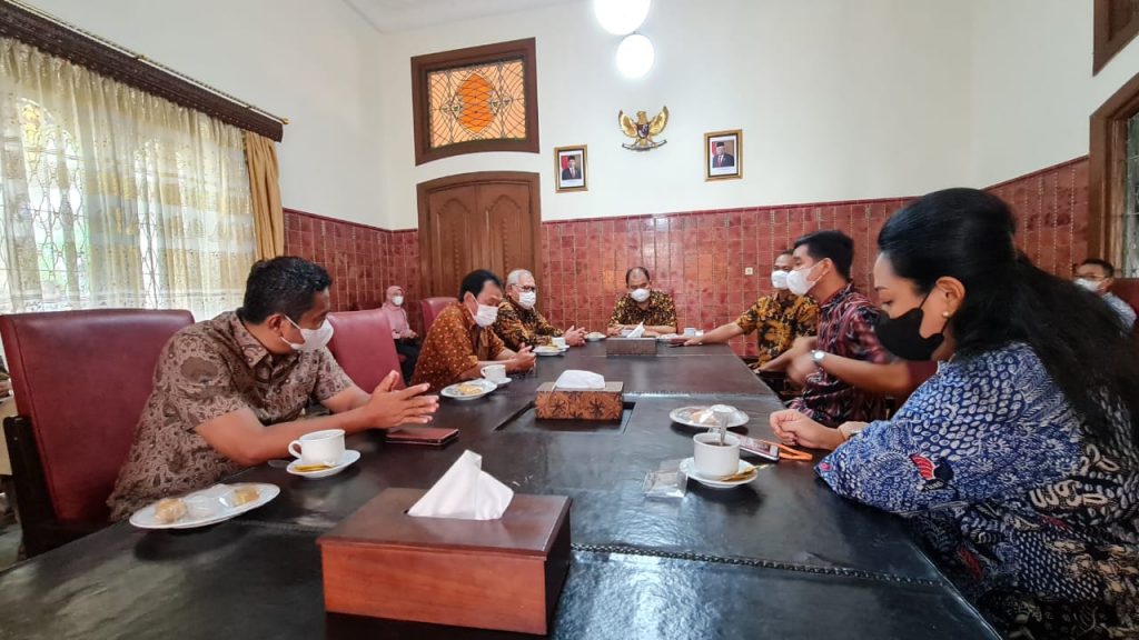 Wali Kota Solo, Gibran Rakabuming Raka (kanan) saat mendengarkan audiensi dari Ketua Kadin Solo dan panitia SGS ke-8 di Loji Gandrung, Solo. (Didik kartika/Fokusjateng.com)