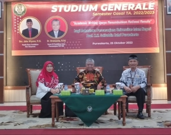 “Stadium Generale kali ini menghadirkan dua narasumber yang luar biasa beliau adalah Dr. Bramastia, M.Pd, Dosen Pascasarjana FKIP UNS Surakarta dan Drs. Joko Wiyono, M.Si. Kepala Dinas Pendidikan Kab. Banyumas, kami harapkan mahasiswa dapat memaksimalkan kesempatan ini, untuk menjadi motivasi dan menumbuhkan budaya menulis dalam proses perkuliahan di jenjang pascasarjana,” terang Nawawi.